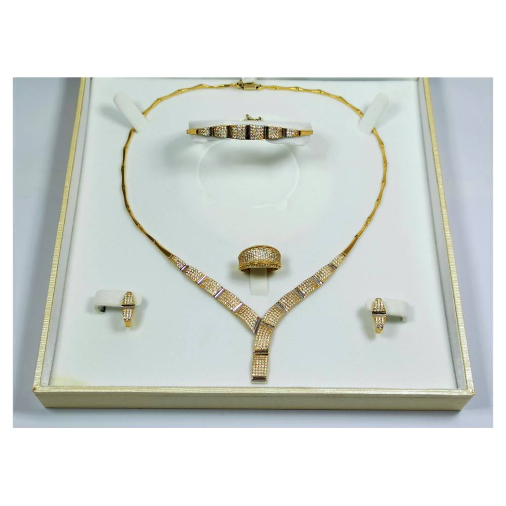 Δίχρωμο Σετ Κοσμημάτων 14 καρατίων με Ζιργκόν. Περιλαμβάνει Κολιέ, Δαχτυλίδι, Βραχιόλι και Σκουλαρίκια