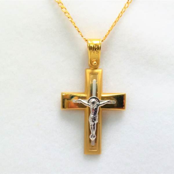 Δίχρωμος Σταυρός 14Κ με Εσταυρωμένο